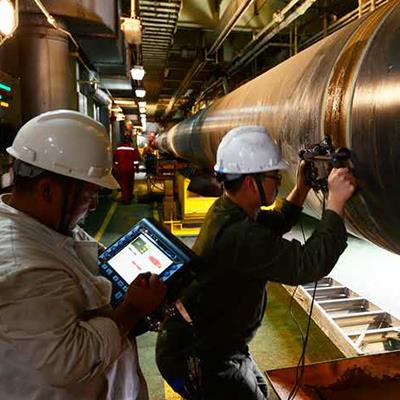 著重將手工相控陣檢測(cè)技術(shù)引入到海底石油管線檢測(cè)的應(yīng)用中去,針對(duì)海管特定的壁厚和坡口形式提出了全新的相控陣(PAUT)檢測(cè)參數(shù)設(shè)置,并在ESBTOOL模擬仿真軟件中進(jìn)行了聲束模擬,確保焊縫兩側(cè)的相控陣探頭發(fā)出的超聲波能夠覆蓋整道焊縫。全自動(dòng)超聲波技術(shù)(AUT)已是世界上一項(xiàng)成熟的檢驗(yàn)技術(shù),而AUT校準(zhǔn)試塊是AUT檢驗(yàn)正確的重要保障。為了進(jìn)一步驗(yàn)證在海上海管檢測(cè)由于海上溫度和相對(duì)濕度變化的可靠性,特在海上應(yīng)用PAUT技術(shù)對(duì)AUT校準(zhǔn)試塊上人工缺陷的檢驗(yàn)試驗(yàn)。試驗(yàn)結(jié)果表明,PAUT技術(shù)檢出率為100%,測(cè)長(zhǎng)定量準(zhǔn)確率高,能夠成功運(yùn)用于海管鋪設(shè)的檢測(cè)中。